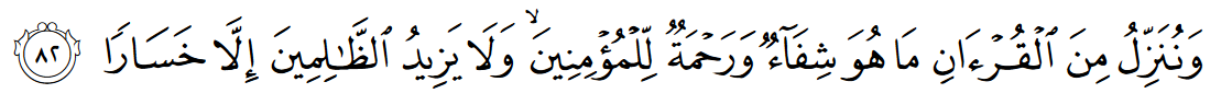 "And We send in the Qur'an that which is healing, and a mercy to the believers and it adds loss only to the unjust."